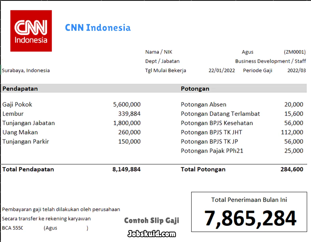 Berikut ini adalah contoh slip gaji CNN Indonesia.