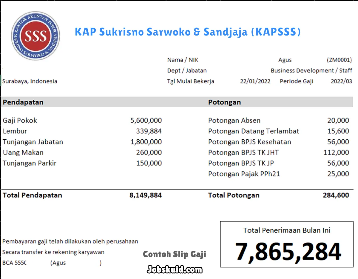 Contoh Slip Gaji KAP Sukrisno Sarwoko & Sandjaja (KAPSSS)