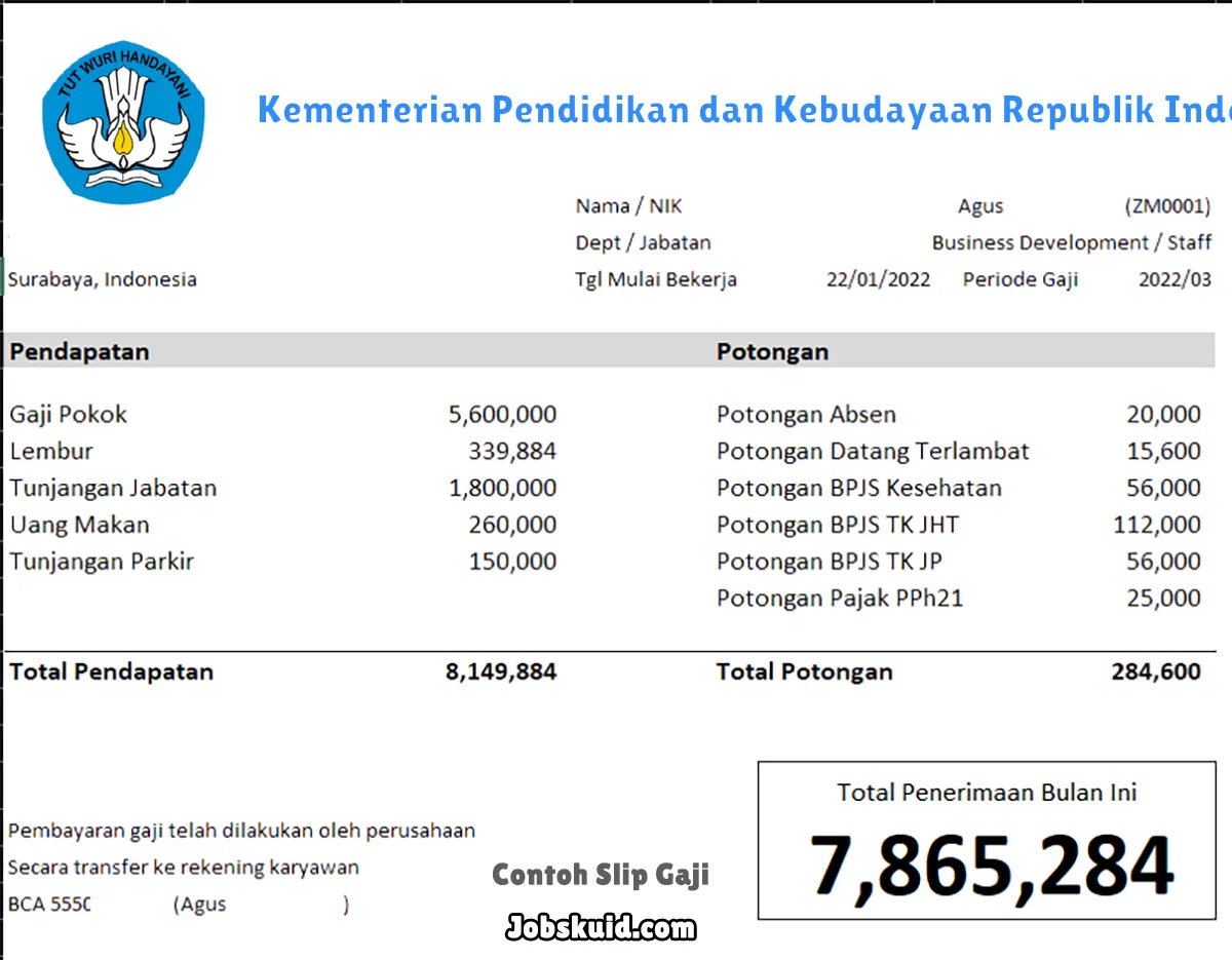 Contoh Slip Gaji Kementerian Pendidikan dan Kebudayaan Republik Indonesia