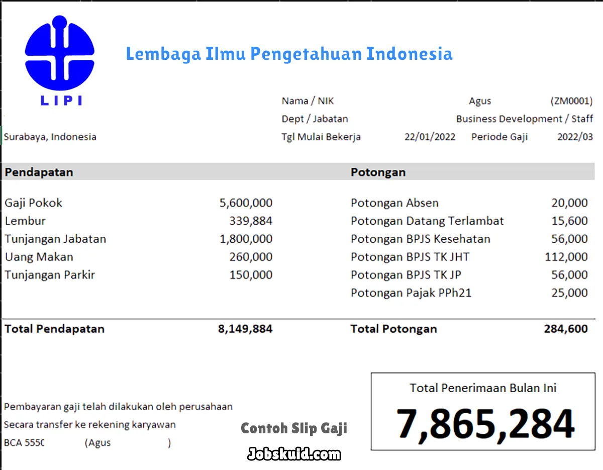 Contoh Slip Gaji Lembaga Ilmu Pengetahuan Indonesia