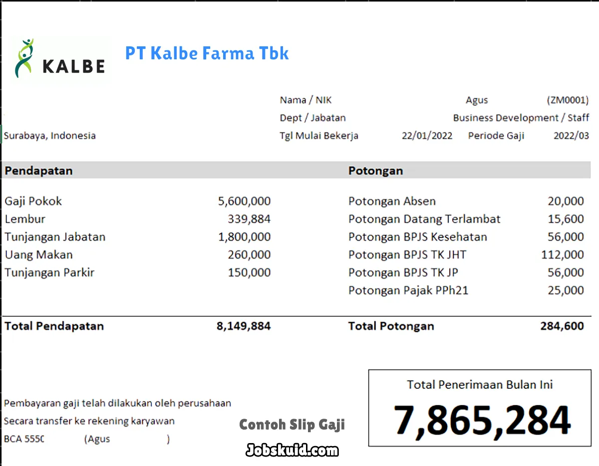 Berikut ini adalah contoh slip gaji PT Kalbe Farma Tbk.