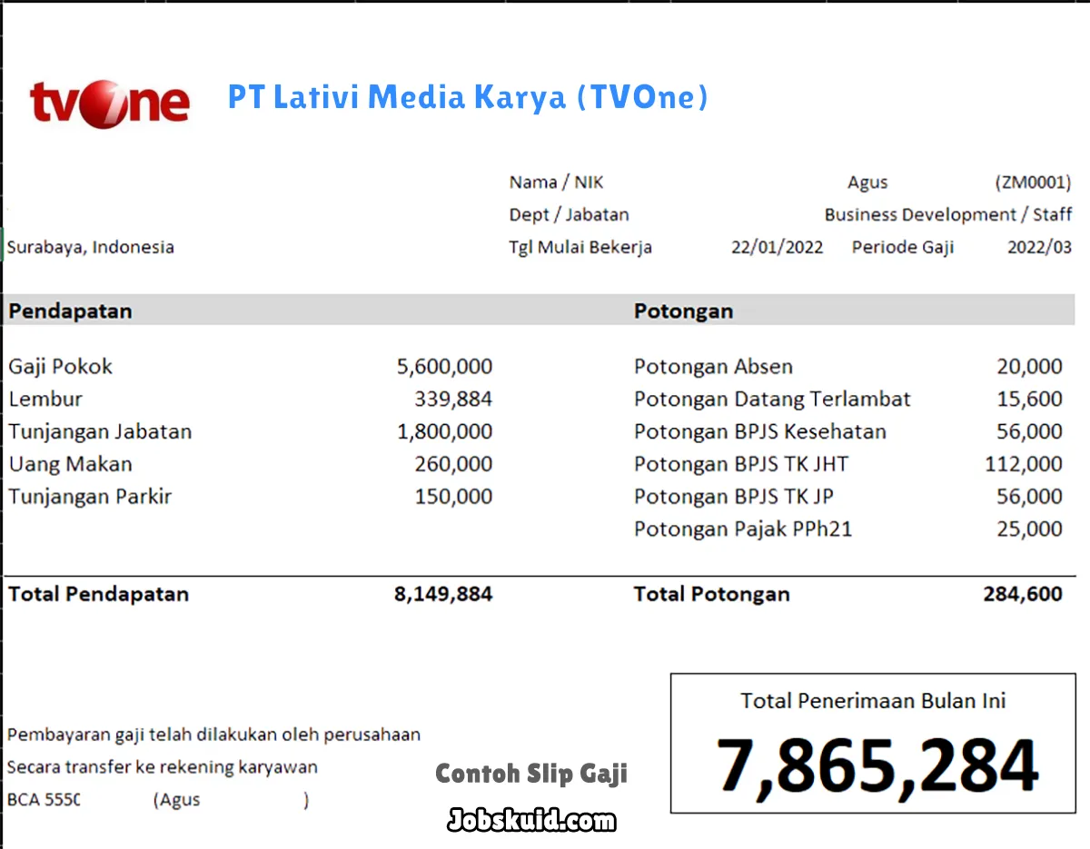 Contoh Slip Gaji PT Lativi Media Karya (TVOne)