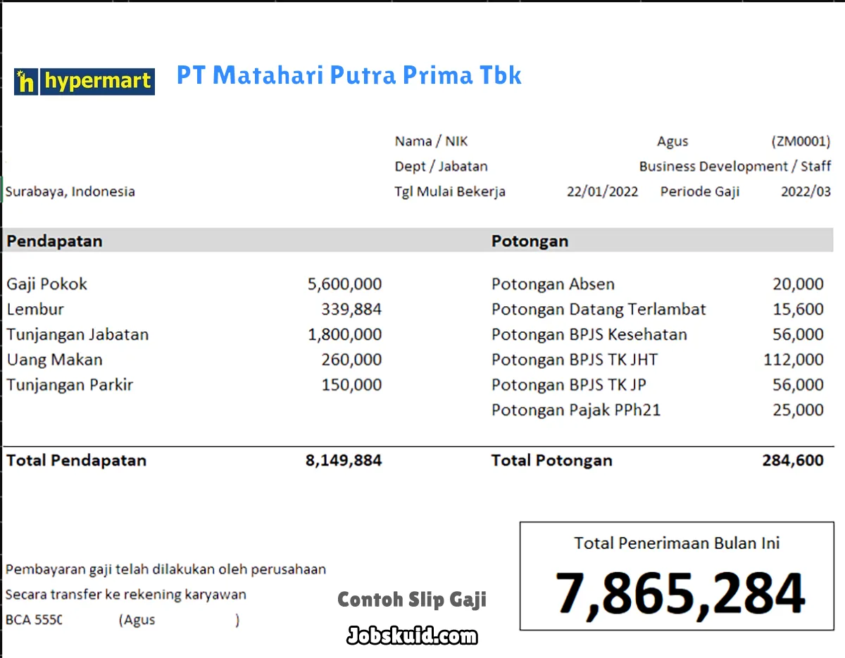Contoh Slip Gaji PT Matahari Putra Prima Tbk