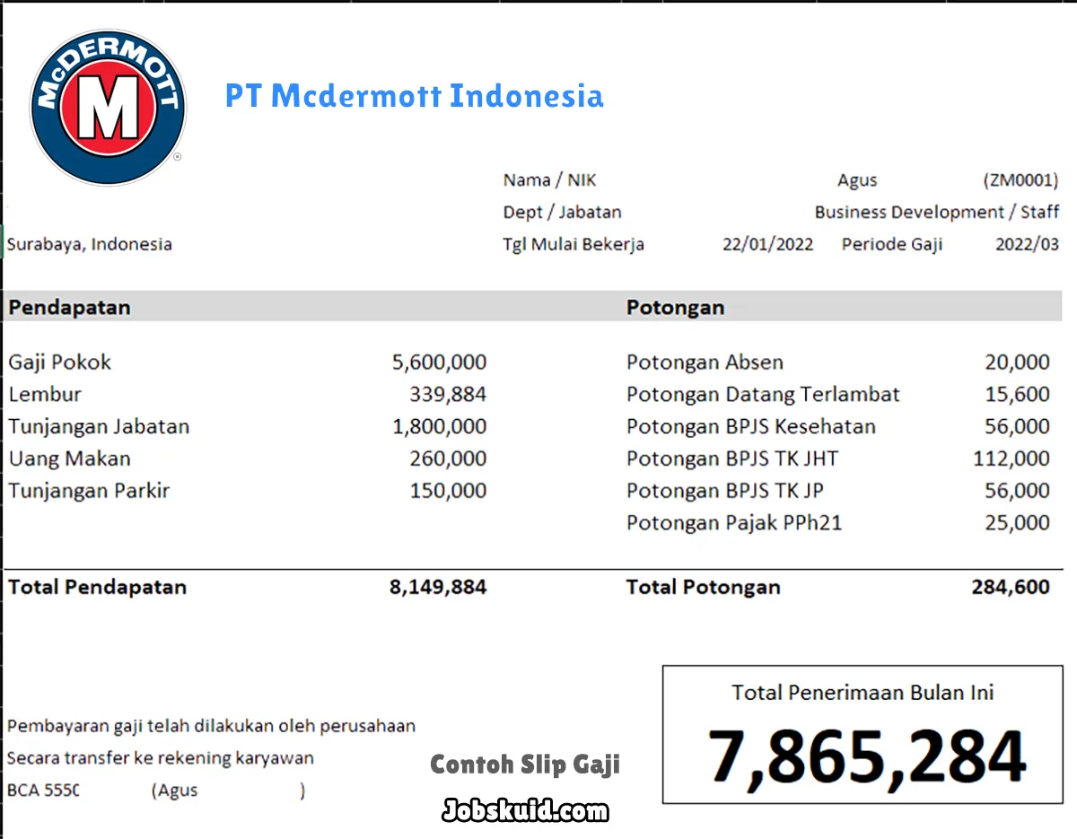 Contoh Slip Gaji PT Mcdermott Indonesia