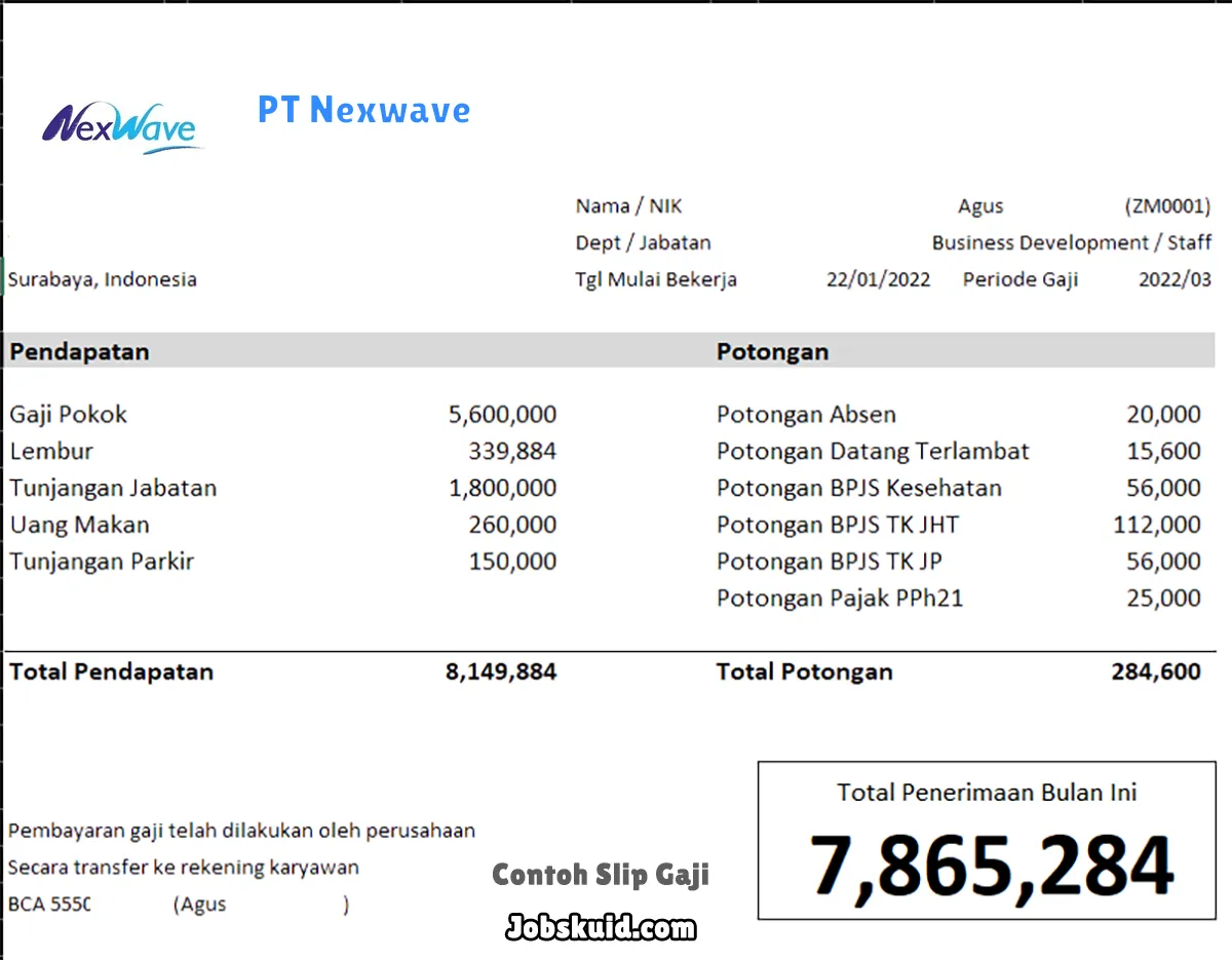 Contoh Slip Gaji PT Nexwave
