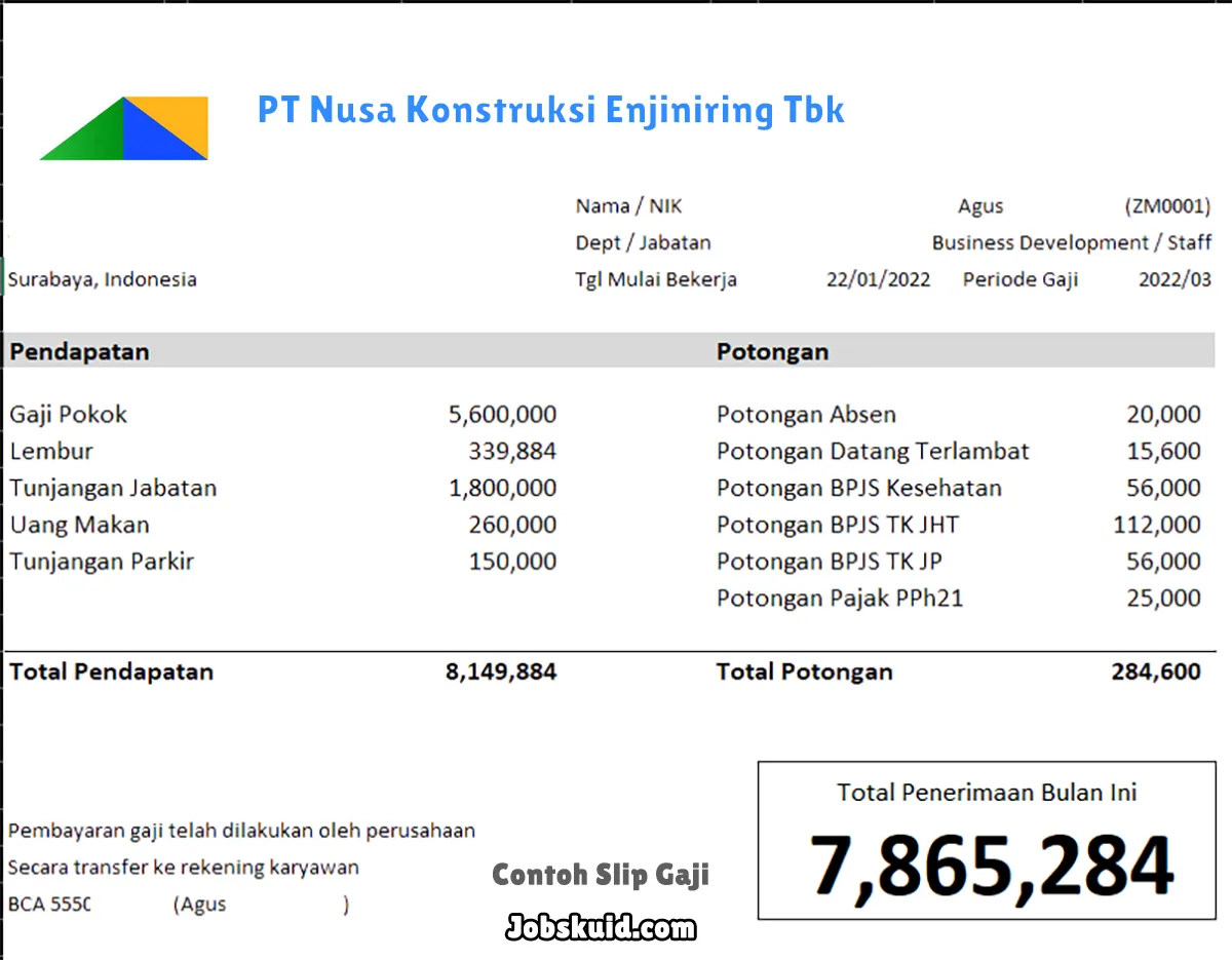 Contoh Slip Gaji PT Nusa Konstruksi Enjiniring Tbk
