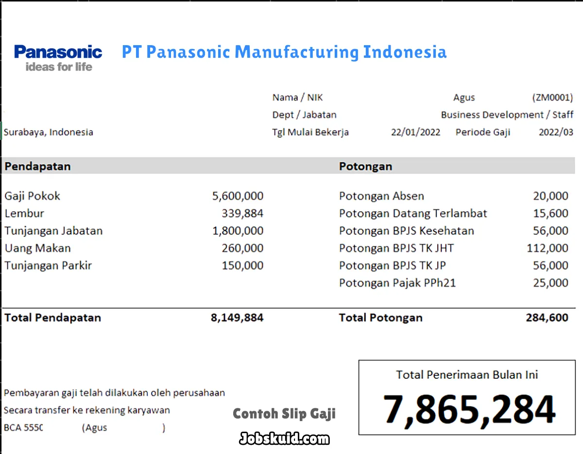 Contoh Slip Gaji PT Panasonic Manufacturing Indonesia