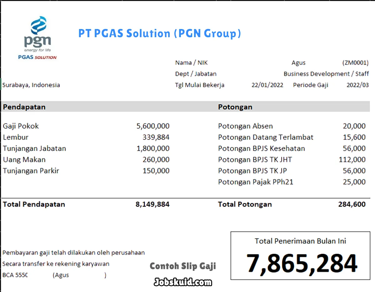 Contoh Slip Gaji PT PGAS Solution (PGN Group)