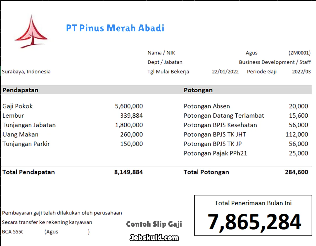 Contoh Slip Gaji PT Pinus Merah Abadi