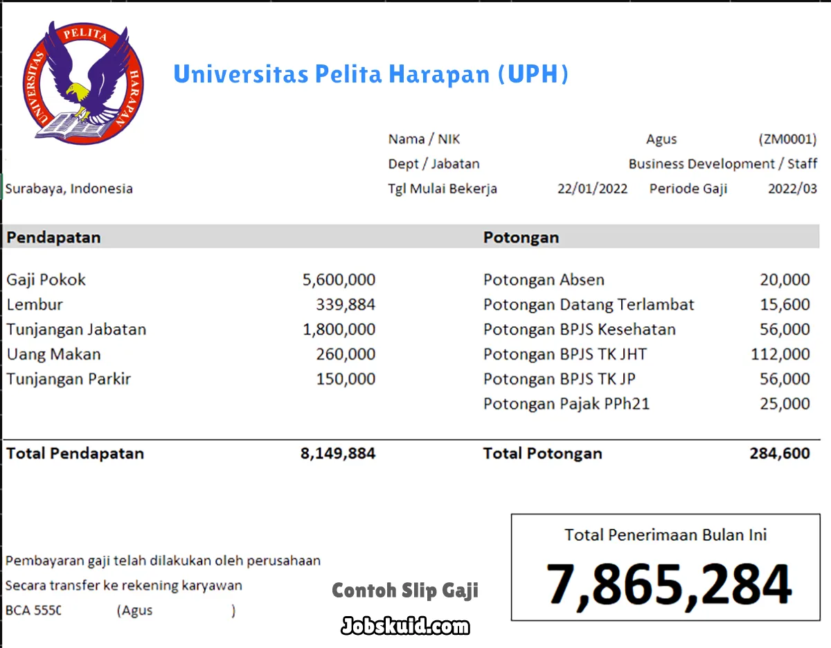 Contoh Slip Gaji Universitas Pelita Harapan (UPH)